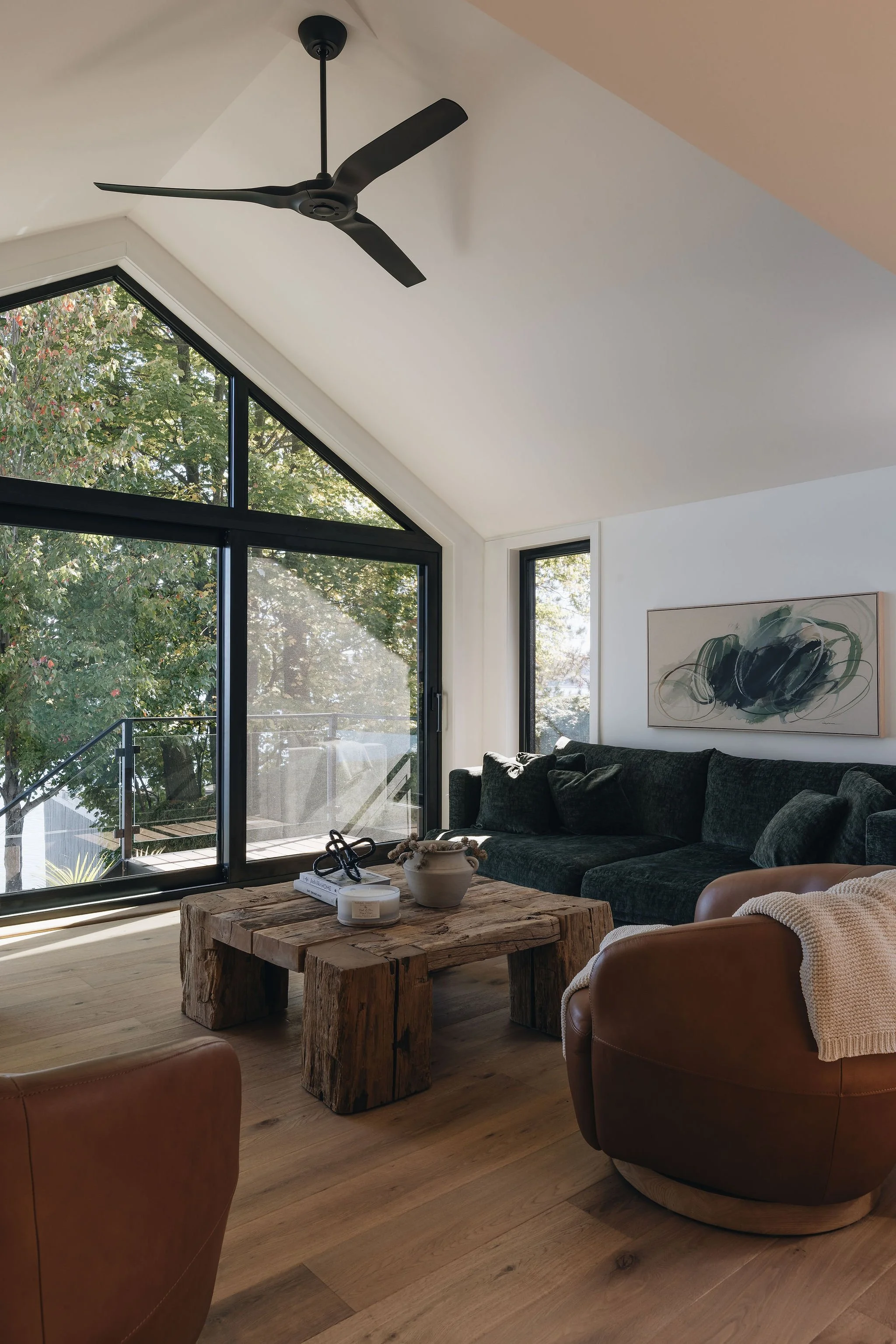 Cette charmante résidence située sur les rives du lac Memphrémagog, rénovée de l’extérieur jusqu’à l’intérieur, arbore désormais une allure contemporaine. L’agencement de la teinte du bois à la maçonnerie existante apporte une touche de chaleur tout indiquée pour ce chalet au bord de l’eau. À l’intérieur, des espaces vastes et épurés invitent à la détente et à profiter du magnifique paysage.
